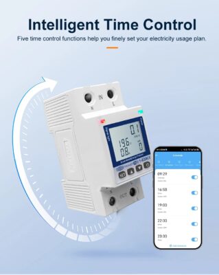 Smart Monitoring – Track current, voltage, power factor, frequency, and total kWh consumption in real-time via Tuya or Smart Life App.
